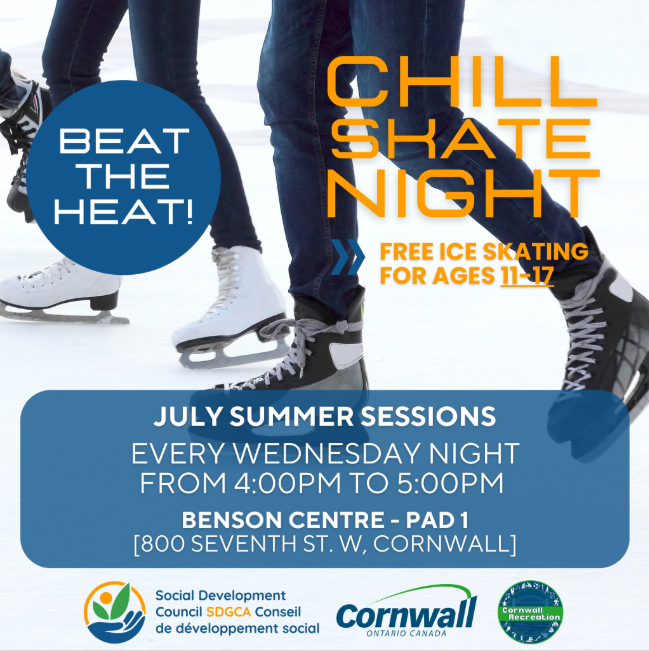 The Social Development Council of SDGCA is hosting a Chill Skate Night from 4pm to 5pm at the Benson Centre. No registration required; this activity is intended for ages 11 to 17.
