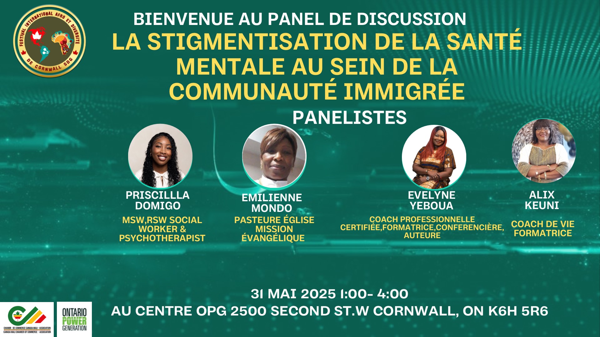 Le Festival International Afro et Diversité de Cornwall SDG (FIADCSDG) a le plaisir de vous inviter à leur prochaine conférence qui se tiendra le samedi 31 mai 2025 de 13 h à 16 h au Centre OPG.
