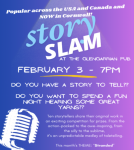 Popular in Britain, all over the United States and across Canada from Vancouver, Edmonton, Ottawa, Toronto and now in Cornwall at the Glengarrian Pub, it’s STORY SLAM! Join us Monday, February 3, 7 pm as audience or story tellers.