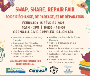 Transition Cornwall+ and the City of Cornwall invite you to attend the Swap, Share, Repair Fair on Saturday, February 15th at the Cornwall Civic Complex.
